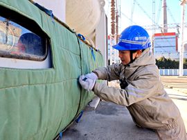 全員加班為變電站設(shè)備做防凍保溫,為網(wǎng)控變電站的關(guān)鍵開關(guān)設(shè)備“穿”上定制保溫棉衣;另一路由經(jīng)驗(yàn)豐富的老員工牽頭,對空壓機(jī)管路及附屬設(shè)施加裝保溫層,”班長趙詩宇一邊指導(dǎo)年輕員工郝巖包裹開關(guān)接線口。